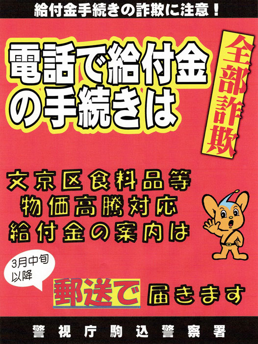 文京区食料品等物価高騰対応の給付金についてのご案内は、「郵送」でお届けします