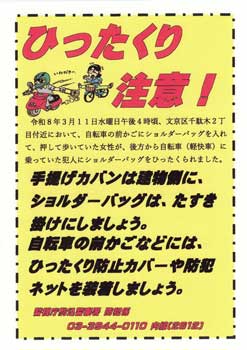 ひったくりにご注意を!